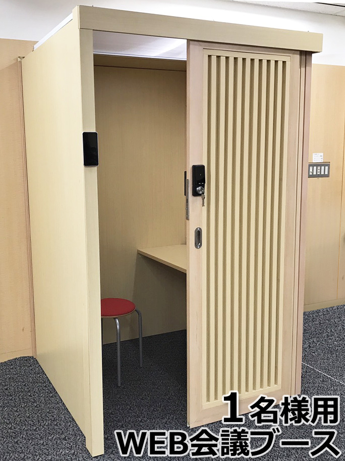 1人用 WEB会議ブース EDOブース 木製 W1200×D1200×H2000 デスク天板・スイッチ付き3口コンセント・シリンダー錠付属 天井なし ミーティングブース 個室ブース 会議用ブース ミーティング用ブース 会議ルーム 個室設計 個室型ブース 平机 デスク ワークデスク テレワークデスク