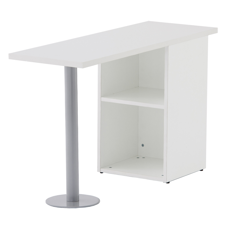 Jシリーズ木製デスクと並べて作業スペースをL型に増設、収納もプラスするサイドテーブル。収納部の棚板は固定です。