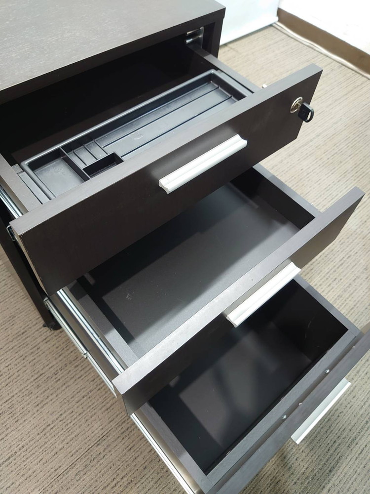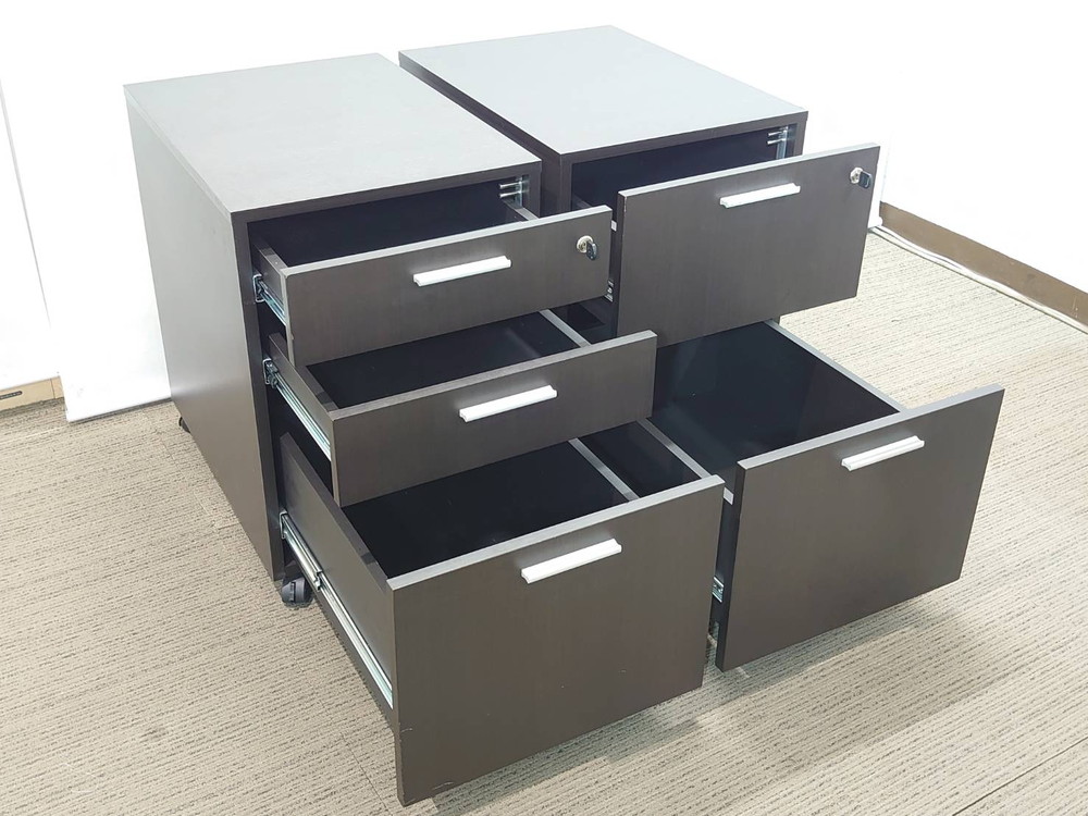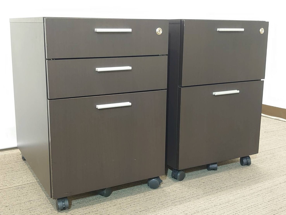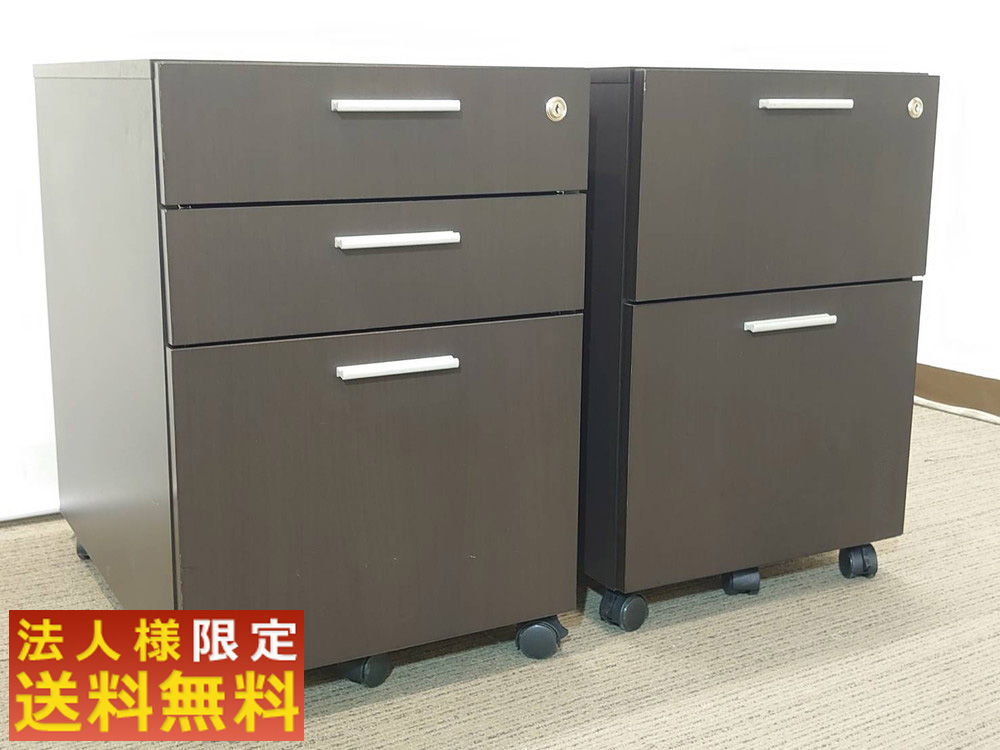 【法人限定 送料無料】2台セット ダイヤル錠 カギ付き インサイドワゴン 机下収納ワゴン キャスターワゴン 役員ワゴン コクヨ 国産 3段 2段 ワゴン サイドワゴン デスクワゴン 袖机 脇机 役員用 ブラウン色 KOKUYO マネージメント S370【中古オフィス家具】【中古】