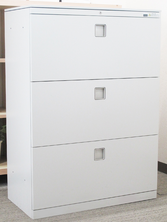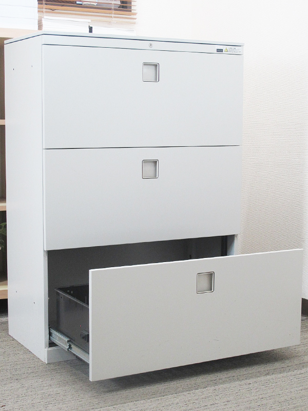 商品詳細:美品 オカムラ レクトライン ラテラル書庫 4BG3ZC ZA75(カギ・天板付属 引出し3段タイプ)