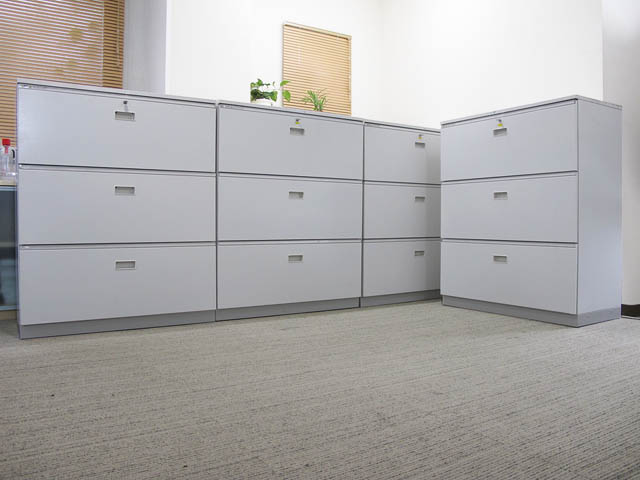 【送料無料 東京地区限定】【美品】 4台セットラテラル書庫 3段 キャビネット 収納庫 本棚 書棚【中古オフィス家具】【中古】