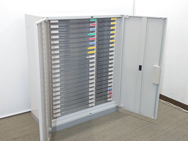 レターケース 扉付プラスチックキャビネット A3 A4 書類ケース 整理ケース トレーキャビネット 書類整理庫 キャビネット 保管庫 両開き書庫 両開き扉 鍵付き書庫 カギ付き書庫 ホワイトグレー色 スチールキャビネット 両開きキャビネット スチール書庫 本棚 書棚 収納庫 保管庫 収納棚 保管棚 扉付き 観音扉 イトーキ シンライン 国産 【中古オフィス家具】【中古】