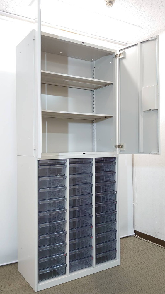 上下書庫 コンビ型 ユニット書庫 両開き書庫 レターケース キャビネット 保管庫 収納庫 本棚 書棚 スチールキャビネット スチール書庫 上下セット書庫【中古オフィス家具】【中古】