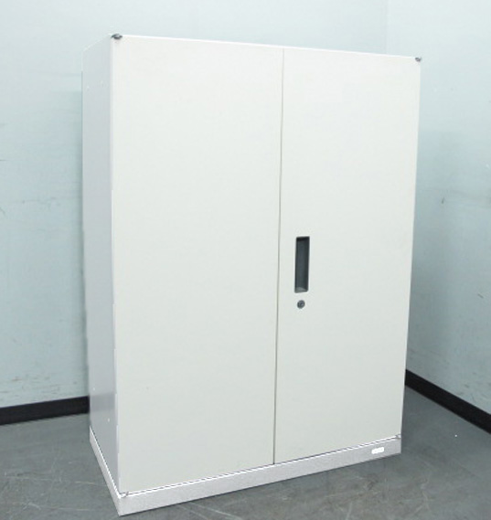 両開き書庫 キャビネット 本棚 書 スチール書庫 保管庫 収納庫 スチールキャビネット カギ付き書庫 ホワイト色 両開きキャビネット オカムラ ヴィラージュ VILLAGE 国産 【中古オフィス家具】【中古】
