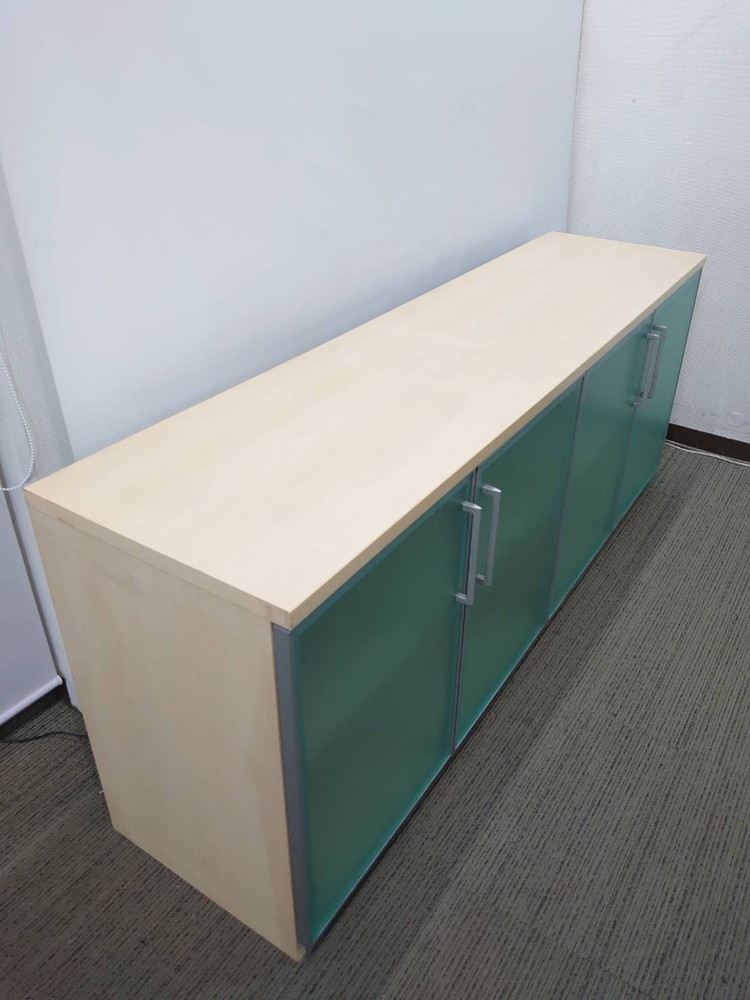 オカムラ ローボード ローキャビネット 収納棚 書庫 本棚 書棚 キャビネット 両開き W1800 D455 H720 クレデンザ アクリル両開き DL68CZ MG06 国産 【中古オフィス家具】【中古】