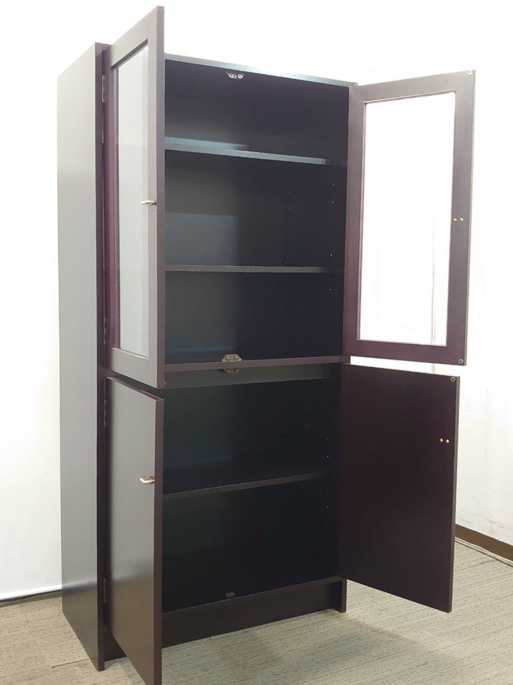 両開き書庫 役員書庫 収納庫 キャビネット 本棚 書棚 役員用収納家具 ガラス書庫 木製 エグゼクティブ家具 エグゼクティブファニチュア 木製書庫 【中古オフィス家具】【中古】