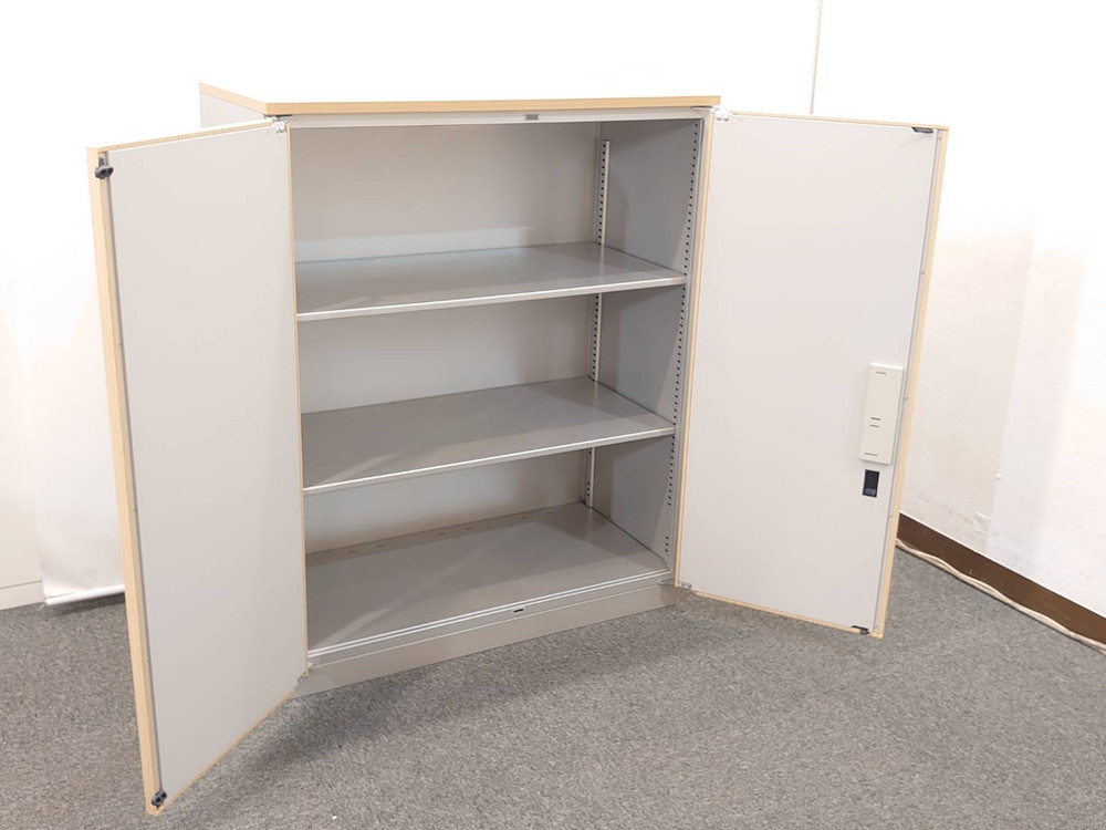 【美品】 イトーキ 両開き書庫 HTR-109HSS-ZW98 キャビネット シンラインキャビネットR スチール書庫 保管庫 収納庫 スチールキャビネット W900×D450×H1120 ITOKI THIN LINE CABINET R 国産 【中古オフィス家具】【中古】