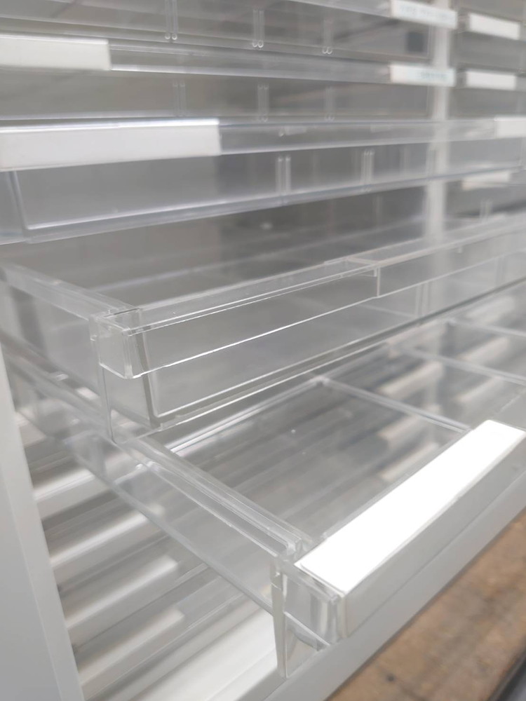 【送料無料 東京地区限定】レターケース 扉付プラスチックキャビネット B4対応 2列21段 浅型 深型 コンビ型 書類ケース 整理ケース トレーキャビネット 書類整理庫 キャビネット 保管庫 両開き書庫 両開き扉 スチール書庫【中古オフィス家具】【中古】
