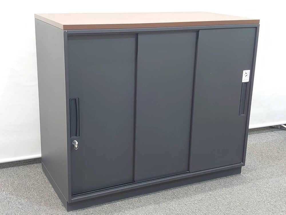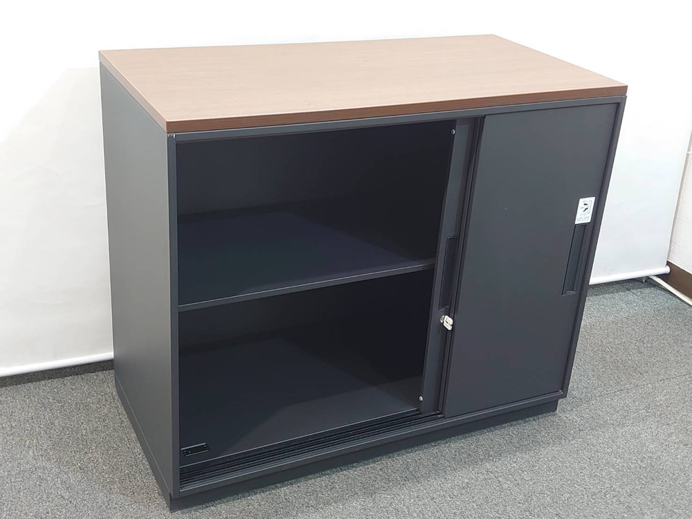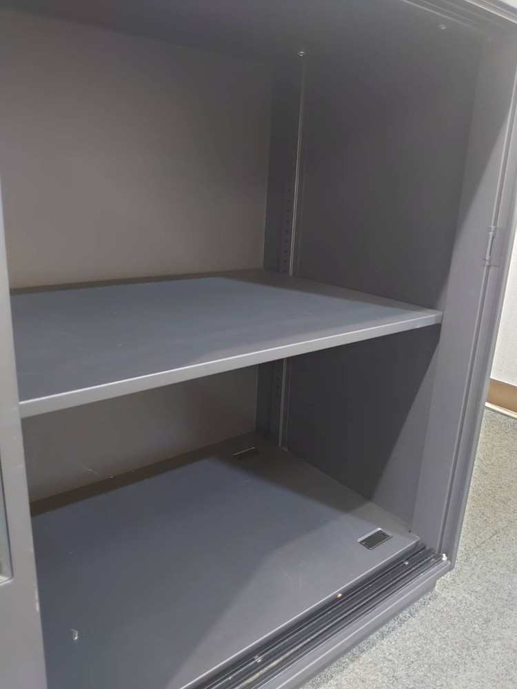 カギ付き書庫 鍵付き書庫 スチール書庫 スチールキャビネット 可動棚板付き 書棚 収納庫 W900×D450×H760 引き違い書庫 DSK デリカウォール Vシリーズ キャビネット 本棚 引き戸【中古オフィス家具】【中古】