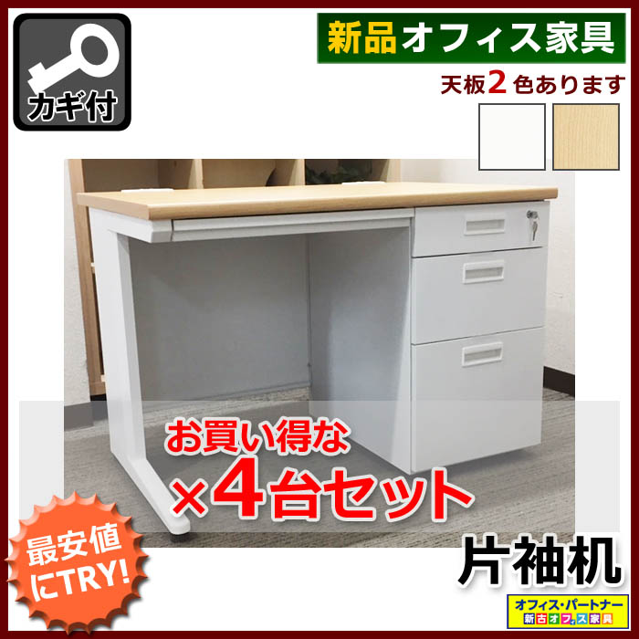 【法人様限定商品】 片袖机 4台セット スチールデスク オフィスデスク 片袖デスク 事務デスク スチールデスク 事務机 デスク ワークデスク 鍵付き コードホール W1000 天板2色あり 【新品オフィス家具】【新品】