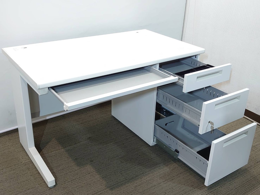 【美品】 イナバ 片袖机 片袖デスク W1000×D700×H700 ホワイト色 オフィスデスク 事務机 ワークデスク スチールデスク 事務デスク オフィス用デスク 国産 【中古オフィス家具】【中古】