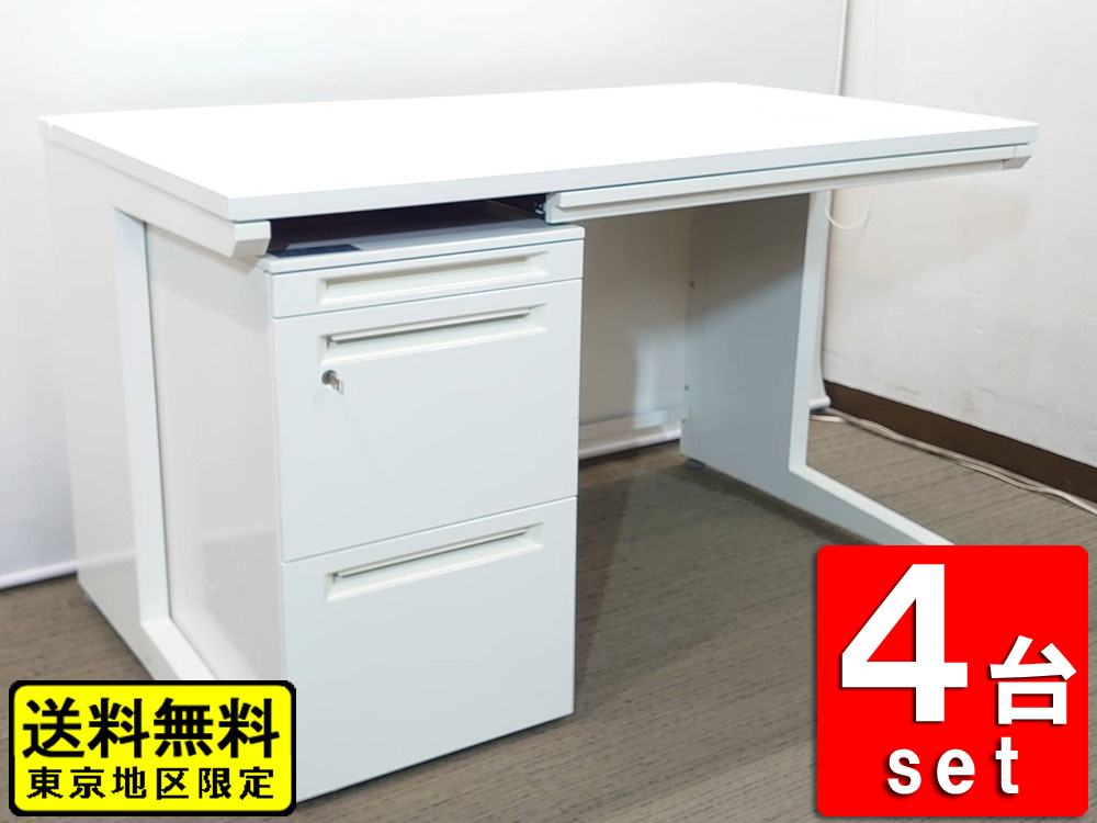 【人気のホワイト色】4人用 開業セット 片袖机 片袖デスク オフィスデスク スチールデスク 事務机 事務デスク 平机 デスクワゴン サイドワゴン キャスターワゴン 4台セット