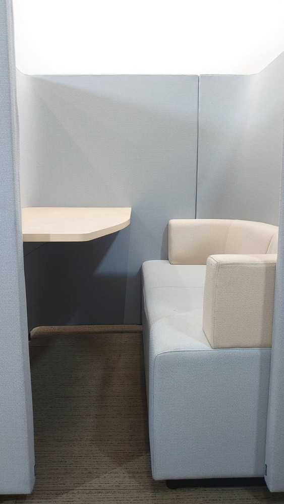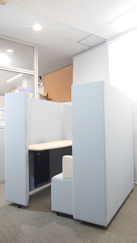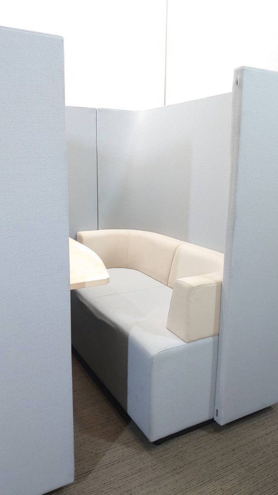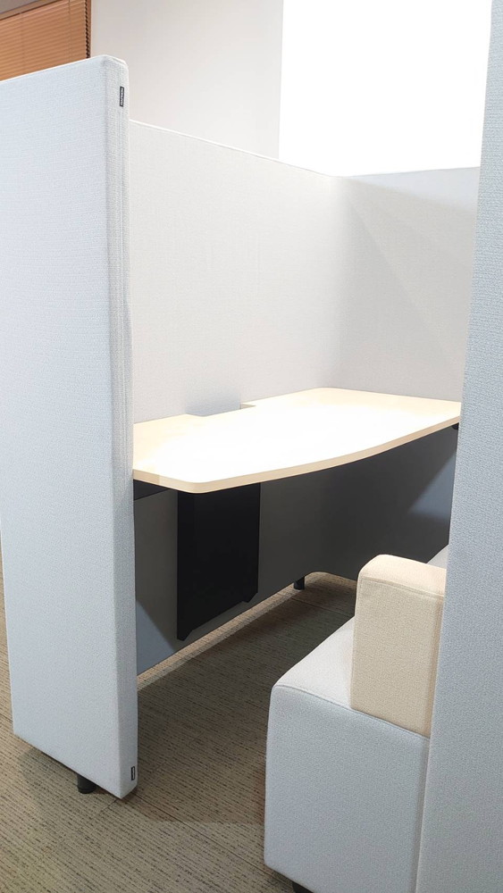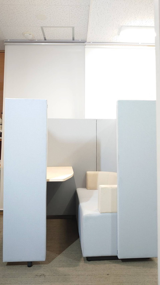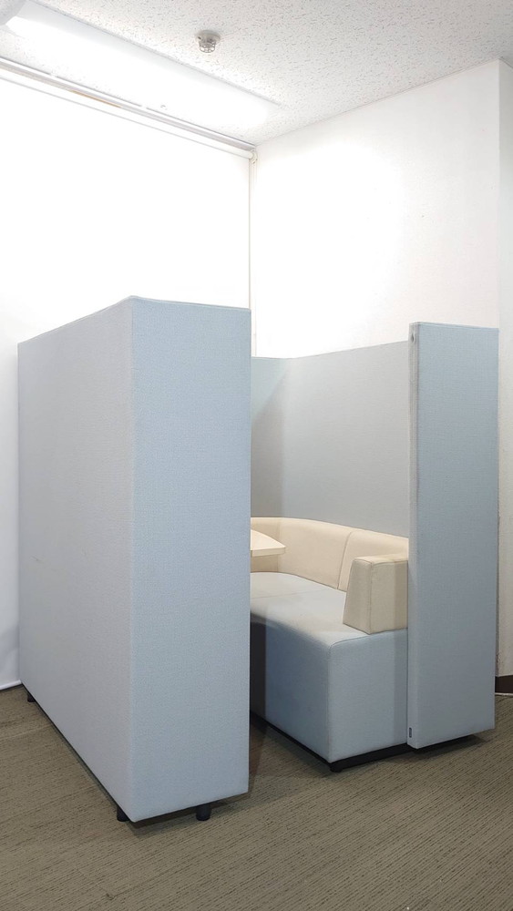 ソファーとテーブル付きパネルブースを組み合わせることで