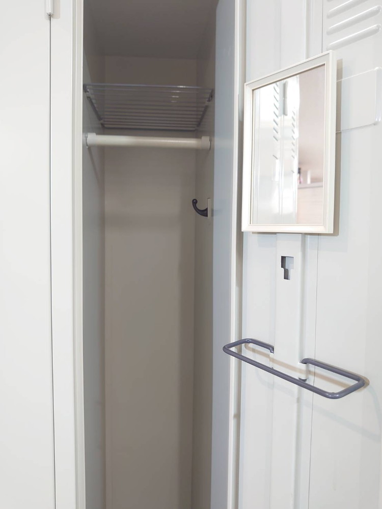 商品詳細:4人用ロッカー (カギ・上下網棚・ハンガーパイプ・ミラー付属)