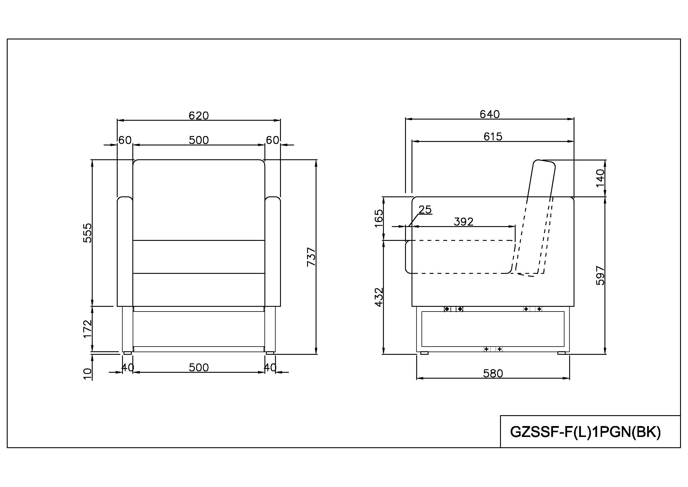 応接室や待合空間、リビングに適したスクエアソファ1人掛け。グリーンのファブリックでカジュアルな雰囲気を演出します。合わせてご利用いただける2人掛けもあります。