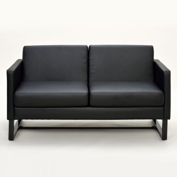 応接室や待合空間、リビングに適したスクエアソファ2人掛け。汚れてもお手入れしやすい合成皮革張り、オールブラックでスタイリッシュな空間を演出します。合わせてご利用いただける1人掛けもあります。
