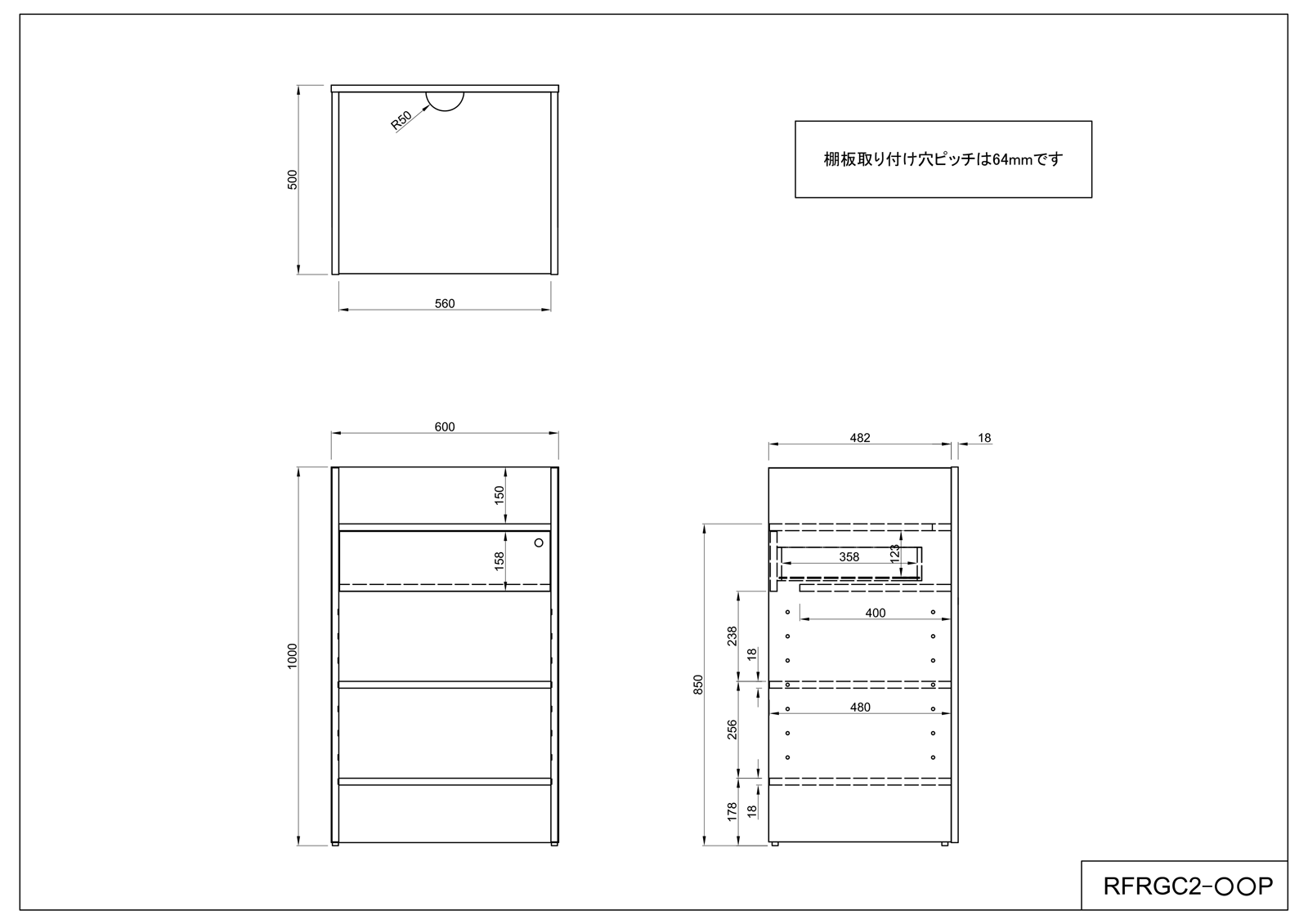 合成樹脂サイズ(mm):W600xD500xH1000