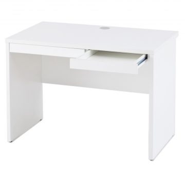 ノルムシリーズの木製デスク引出付きW1000。文具など小物が収納できる引出しが2箇所について机上もすっきり。天板、幕板に配線穴があります。背面化粧あり。