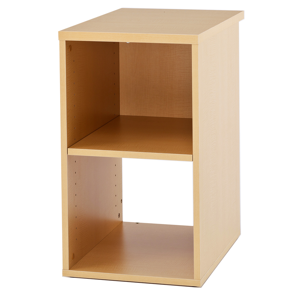 ノルム木製デスクシリーズの隙間収納W400。隣りのデスクとの間に置けば作業スペースが広がり、収納を確保できます。背板は収納上部のみ、天板直下に配線用切り欠きがあります。可動棚1枚付き、可動ピッチは32mmで17段階です。