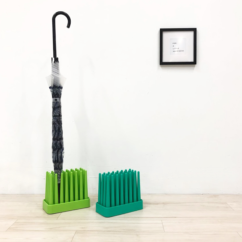 コンパクトなのに収納力抜群、芝生をイメージしたデザイン傘立て。狭い玄関でも場所取らずに8~10本の傘を収納できます。ベースには錘が入っており長い傘を立てても安定感があります。広いスペースには複数を並べて置いてもおしゃれ!水滴は底にたまりますので時々逆さにして水捨ててください。