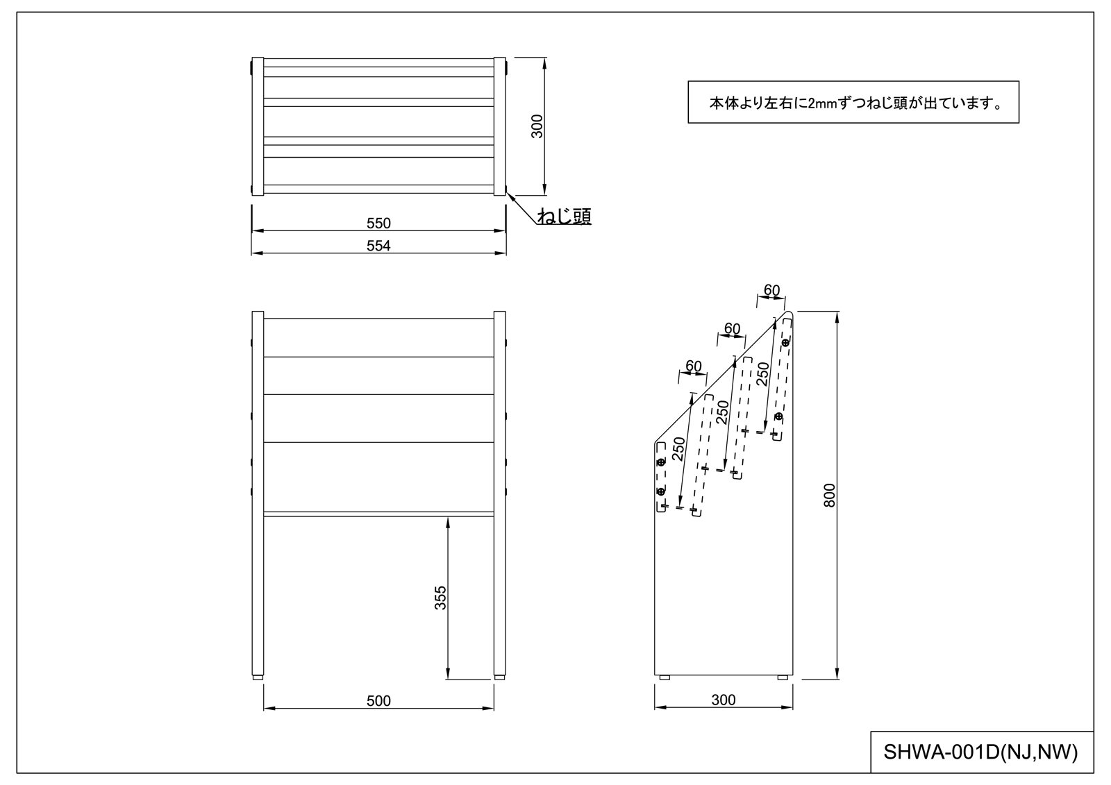 サイズ(mm): W554xD300xH800