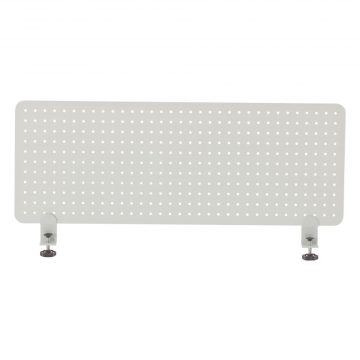 パネルに孔開きのパンチングメタルを使用した、光が感じられるデスクトップ用スクリーン。スチール製でマグネットが使用できます。クランプ式で取り付け簡単、金具は左右に動きます。天板厚18~35mm、設置部の奥行きが40mm以上のデスクに設置可能です。