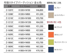 【法人様限定】送料無料 新品 ZパネルH1600×W600 Z-1606C ライトグレー ブルー イエローグリーン オレンジ ネイビー ブラック H1600×W600 オフィス イベント パネル
