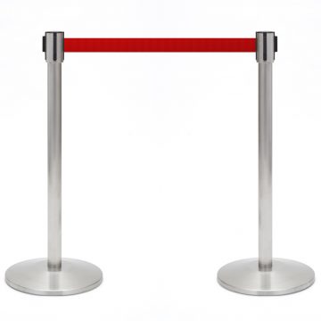 4方向に連結可能なポールパーテーションAタイプ。厚みのあるベースで安定感があります。ベルトのカラーはレッドで、長さは最大2.1mです。別売りのポールパーテーション専用案内板(RFPP-OPA)の取り付けが可能です。防水対応しておりませんので屋内でご使用ください。