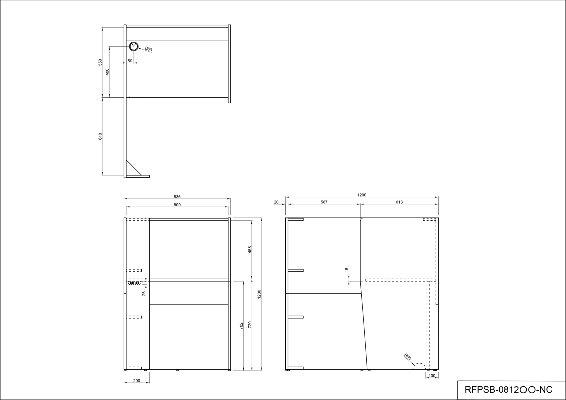 サイズ(mm): W836xD1200xH1200(天板H720)