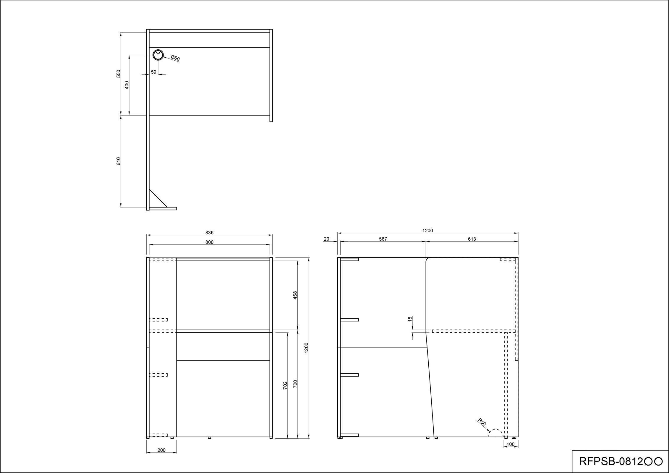 サイズ(mm): W836xD1200xH1200(天板H720)