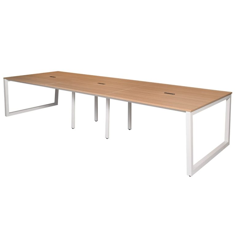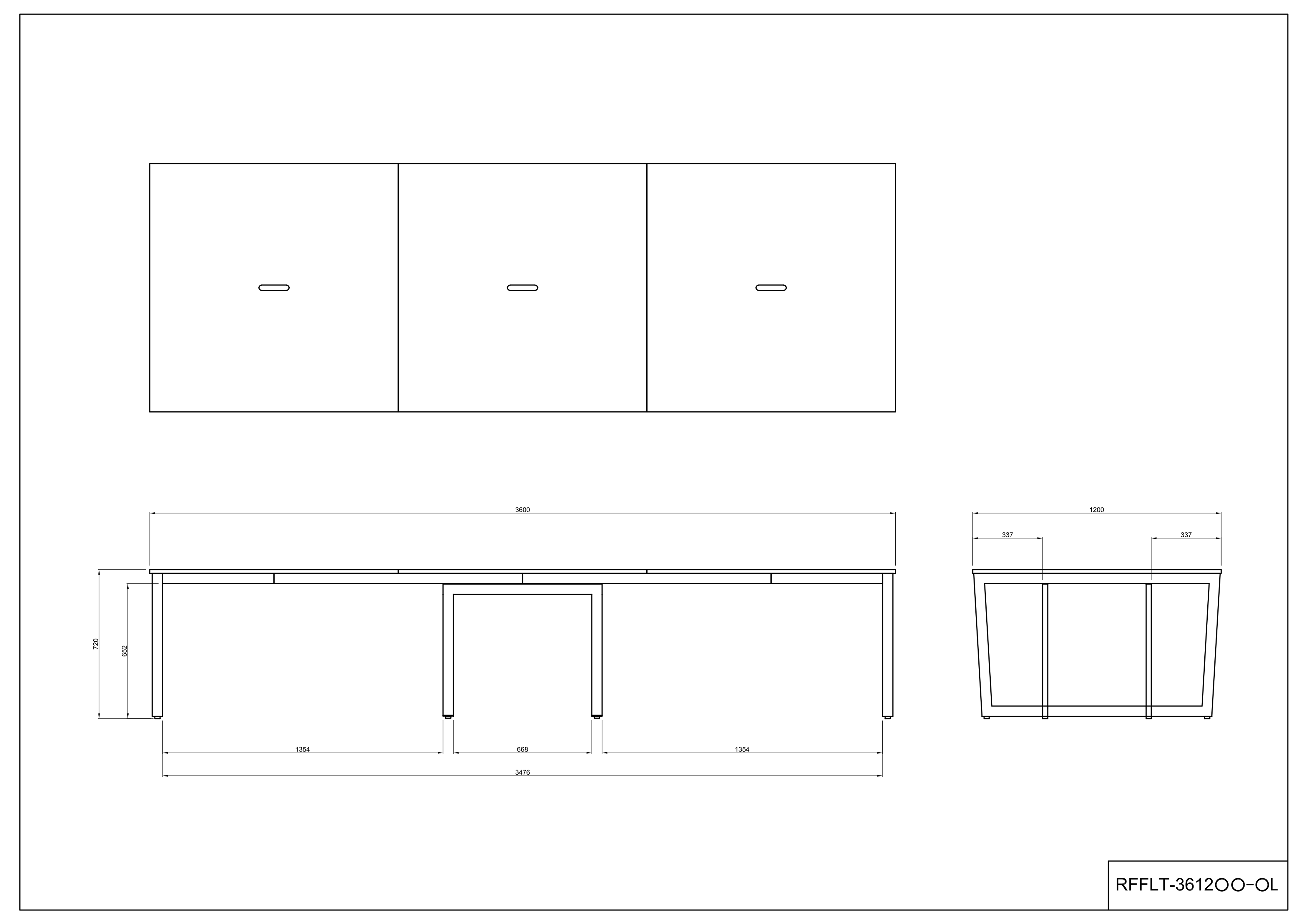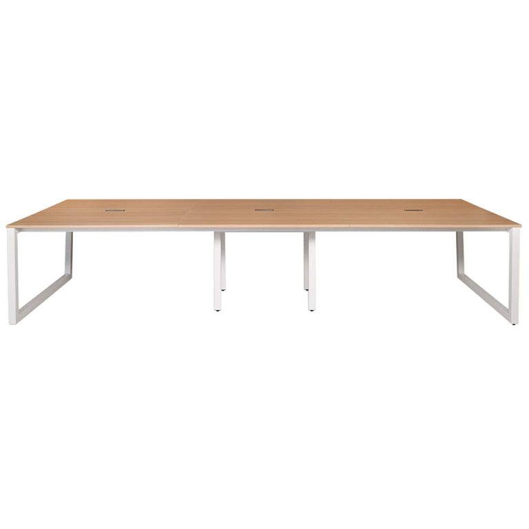 微かに角度をつけたフレーム脚のデザインが特徴的なリスムシリーズのフリーアドレス用テーブル。8人用のフリーアドレスデスクに適した全長3600mmの大型ワークテーブルです。下肢空間が広く使用人数の調整がしやすいためミーティングテーブルとしてもご利用いただけます。天板は3枚継ぎでそれぞれに4ヶ口コンセントを備えています。