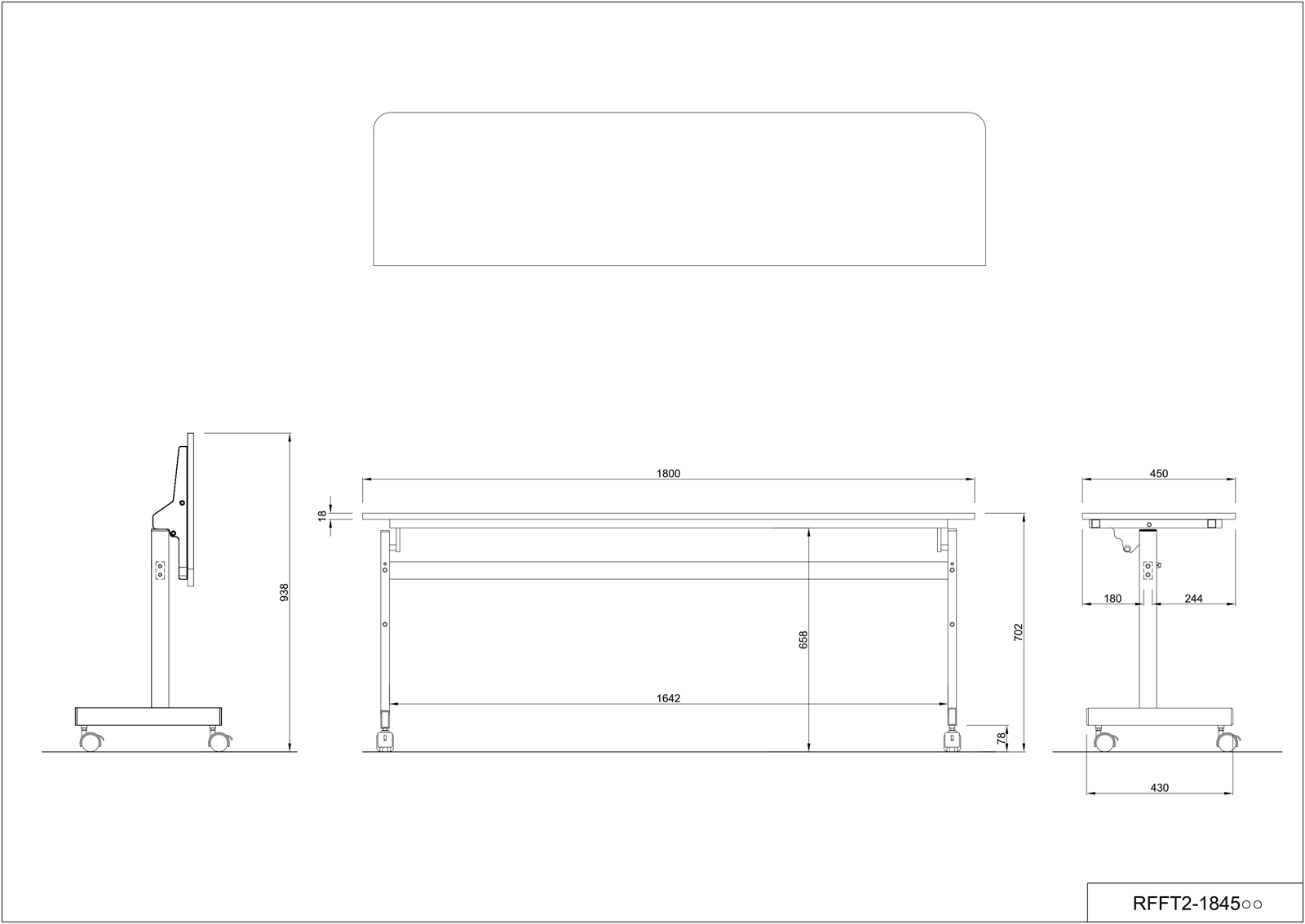 | シンプルフォールディングテーブルⅡW1800xD450。奥行き45cmで限られたスペースにたくさん置けます。ラックやフックを省いたシンプル構造で見た目もすっきり、天板はレバー式で簡単に折りたため、スタッキングして収納できます。天板は前方の両角がアール(R50)、手前は直角になっており、4台を島型にレイアウトしたときに配線が可能です。キャスター4個すべてストッパー付き。ご使用の際は、必ずキャスターをロックし、移動させる場合にのみ解除してください。別売オプション幕板(RFFT2-OP-180WH)の取り付けが可能です。 | |