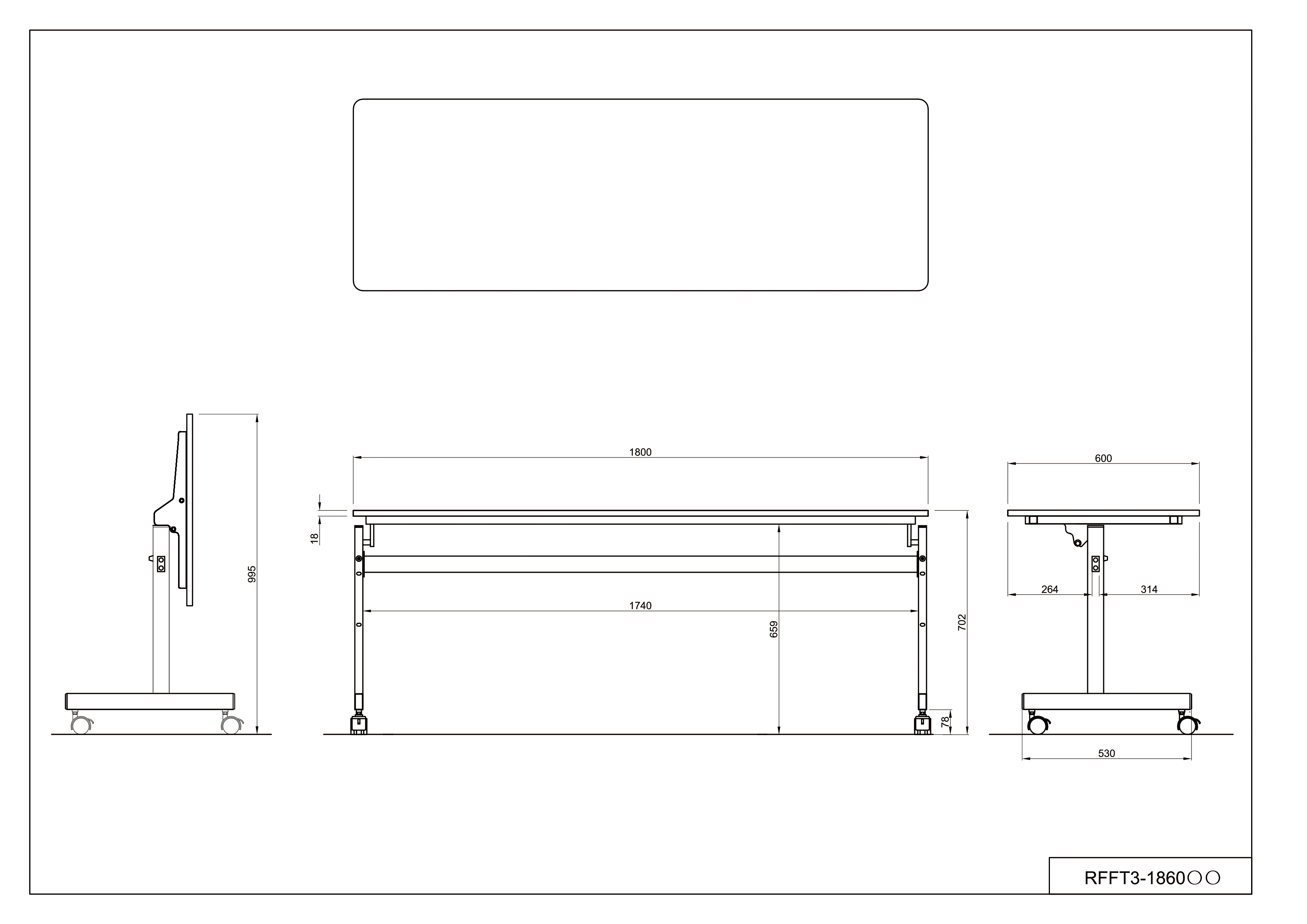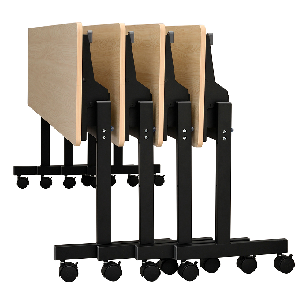 セミナールームや会議室、教室に欠かせないフォールディングテーブル。天板折りたたみ式でスタック収納が可能です。棚やフックを省いたシンプル構造、RFFT2より脚部間の幅を広げたことで下肢空間がゆったりしています。天板は四隅すべて丸角で、島型レイアウトの際には中央に配線逃し用の隙間ができます。また、丸角デザインによりカジュアルな印象で親しみのある空間を演出できます。別売のオプション幕板(RFFT3-OP-18NA)の取り付けが可能です。