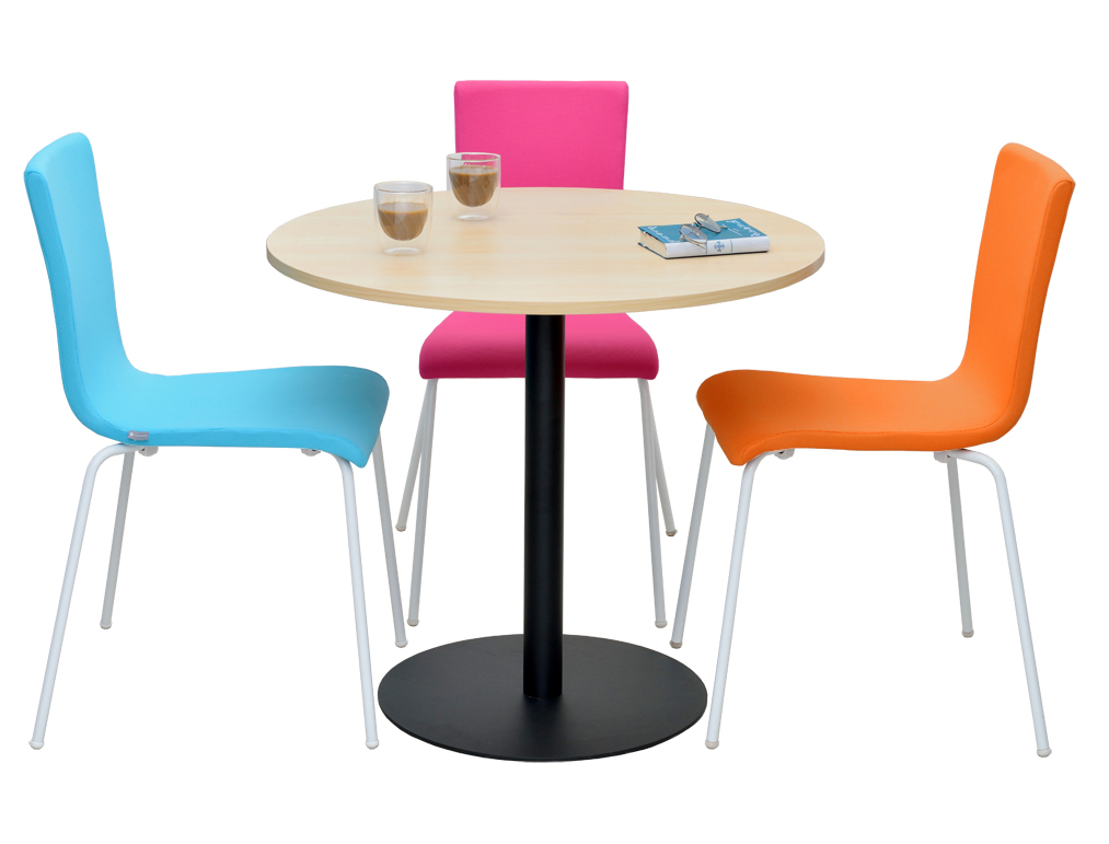 天板直径80cmのリフレッシュテーブル。脚部はスタイリッシュな黒マット仕上げで、様々なインテリアシーンにマッチします。休憩スペースやロビーのカフェテーブルとして、また、エントランスや商談スペースでもご利用いただけます。2〜4人用。