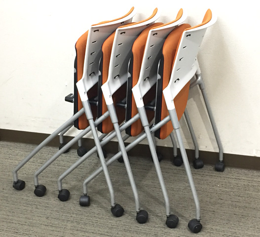 (背面樹脂製 座面布張り キャスター付き 平行スタック可)