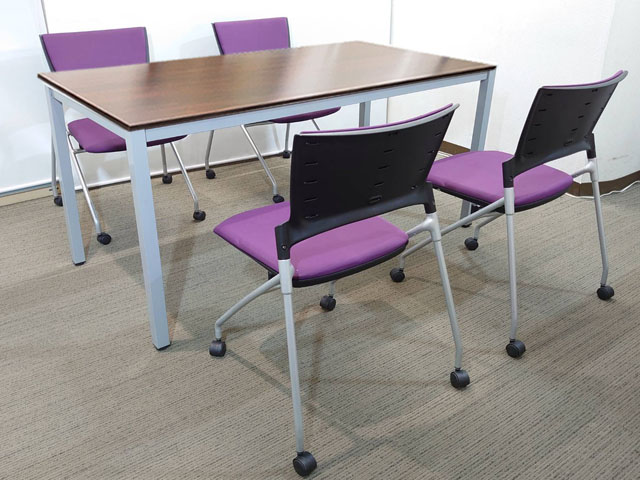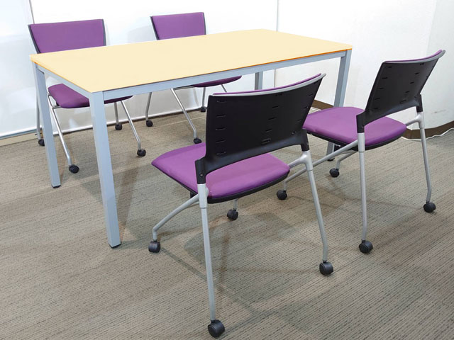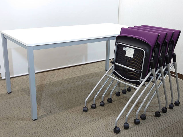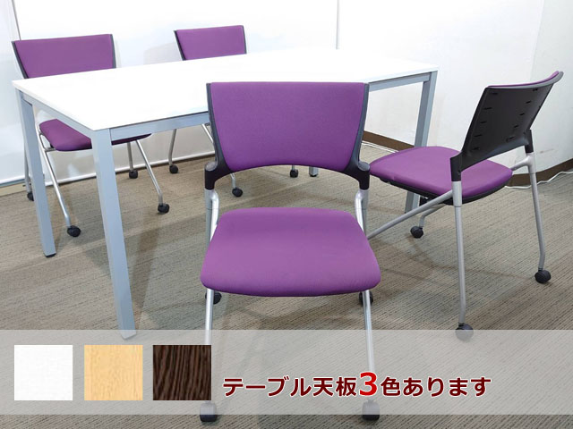会議テーブル 会議用テーブル ミーティングテーブル ミーティングセット テーブル3色あり 会議チェア ネスタブルチェア 平行スタックチェア 有料オプションあり アクリル板 飛沫感染予防パネル 【中古オフィス家具】【中古】
