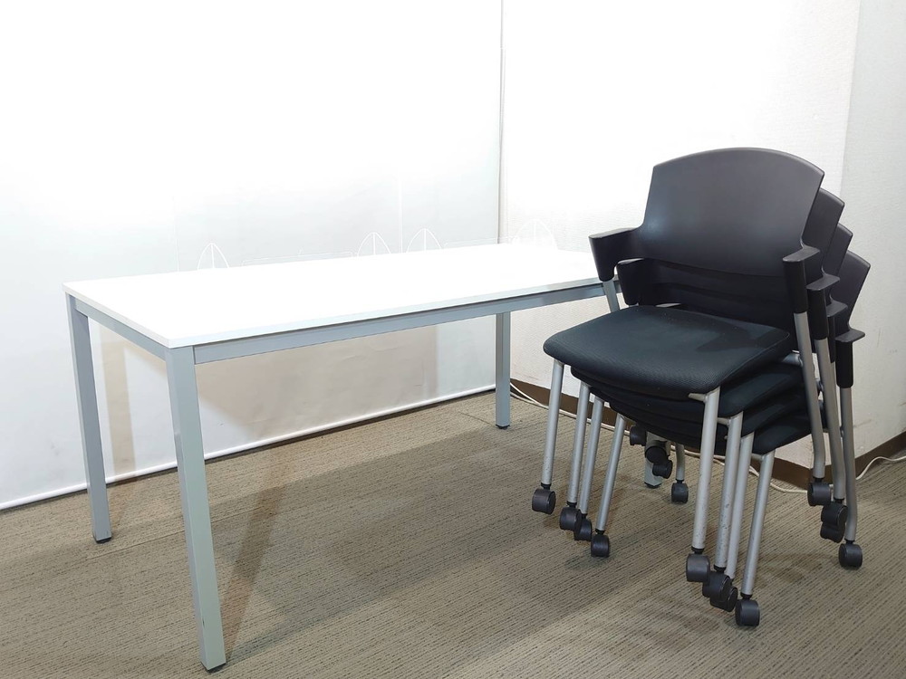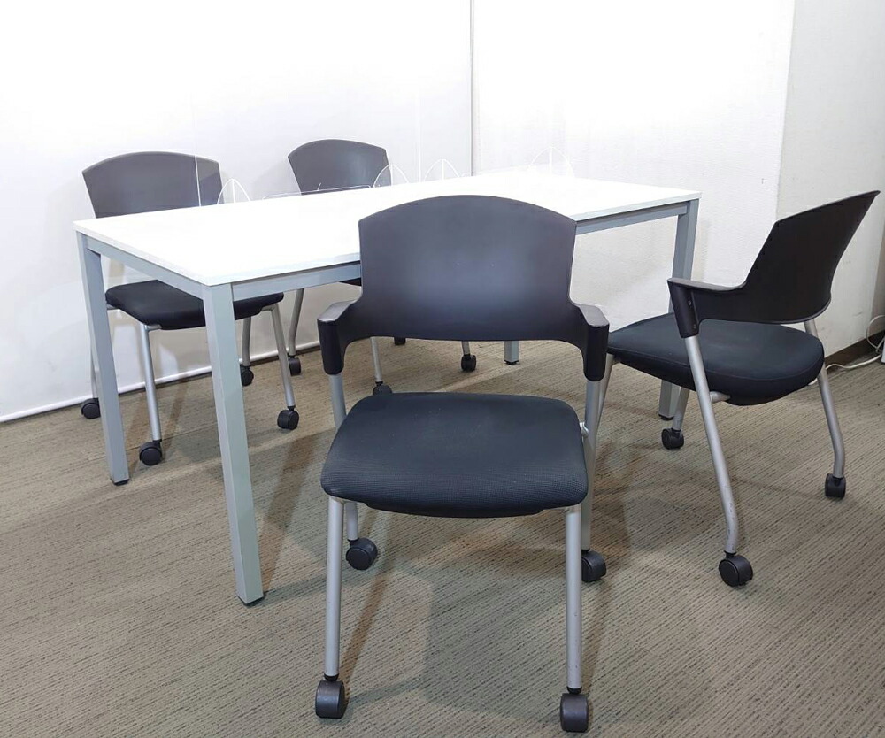 会議テーブル 会議用テーブル ミーティングテーブル ミーティングセット テーブル3色あり 会議チェア スタッキングチェア スタックチェア 有料オプションあり アクリル板 飛沫感染予防パネル 【中古オフィス家具】【中古】