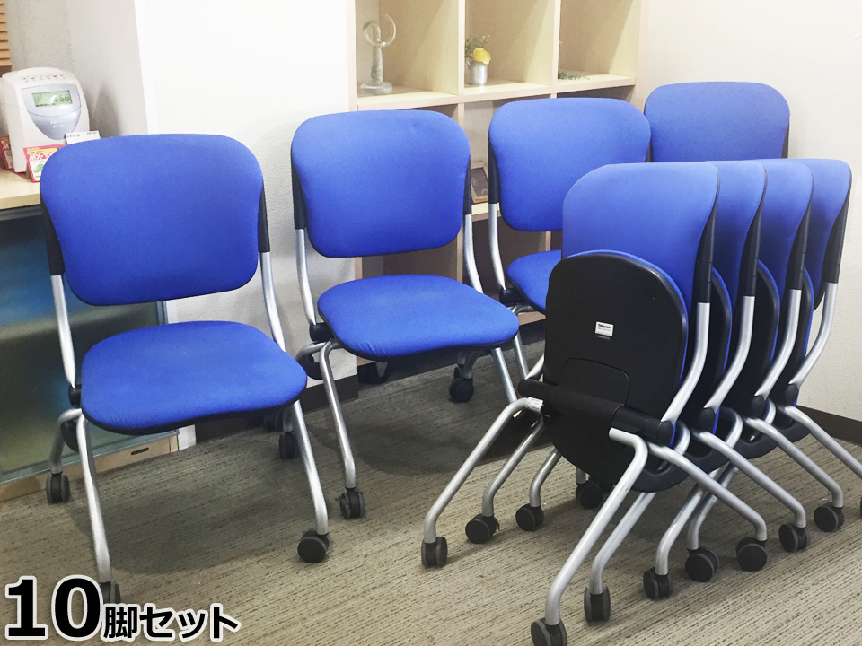 【中古・美品】オカムラ トーション 会議チェア10脚セット(布張り キャスター付き 平行スタック可)