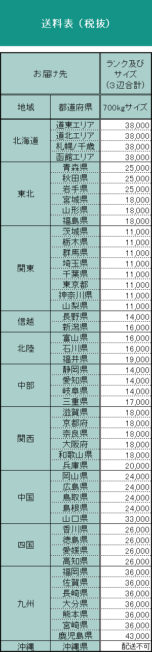 配達会社につきましては当店で契約している業者を利用させていただきます
