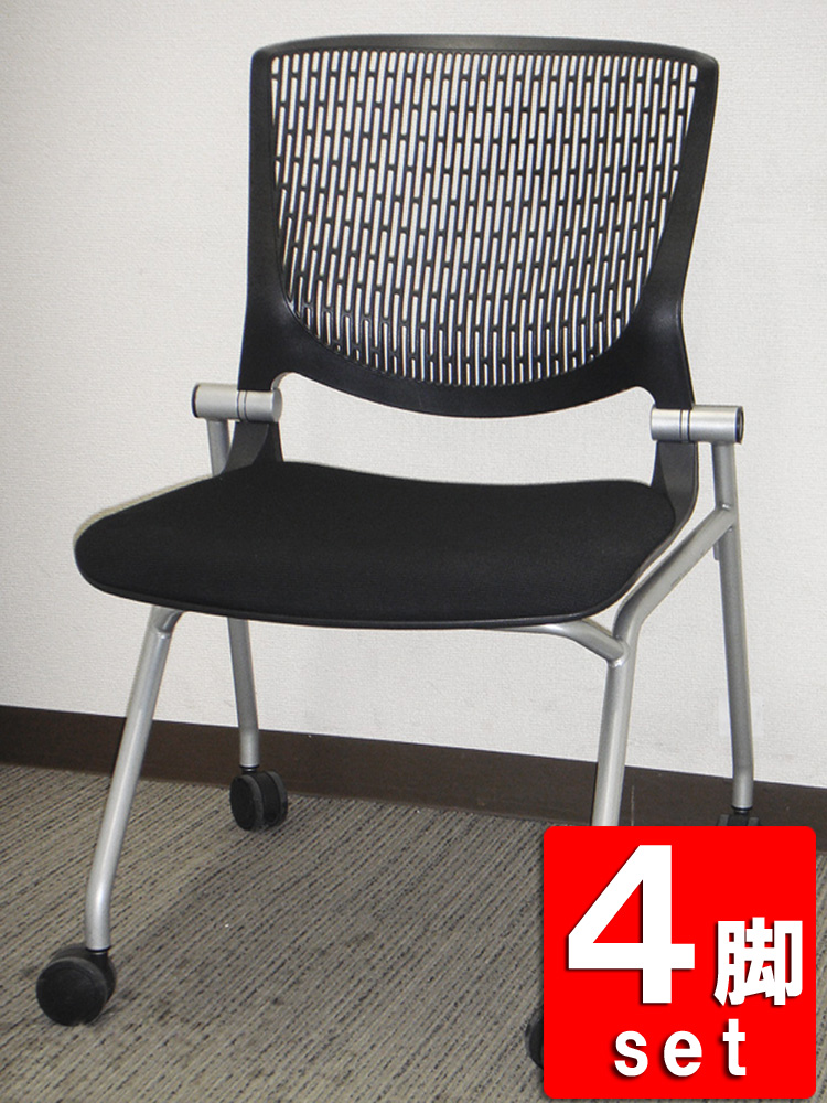 【送料無料 地域限定】 4脚セット オカムラ 岡村製作所 Grata グラータ 国産 ミーティングチェア 会議チェア スタッキングチェア ネスティングチェア ネスタブルチェア スタックチェア 平行スタックチェア【中古オフィス家具】【中古】