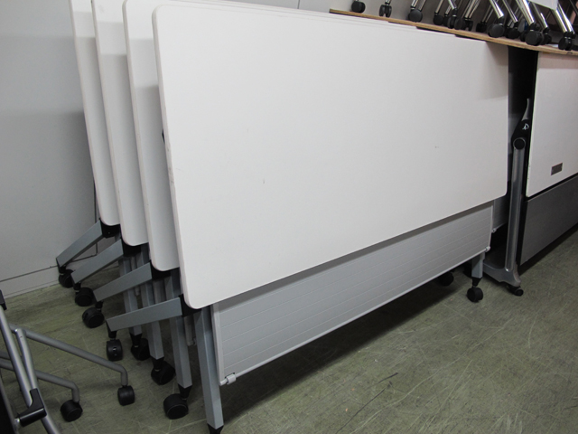 【送料無料 東京地区限定】 イトーキ HX スタックテーブル 4台セット 折りたたみテーブル 折り畳みテーブル ミーティングテーブル 会議テーブル 幕板付 長机 会議机 W1500 D600 平行スタックテーブル フォールディングテーブル スタッキングテーブル 会議用テーブル 天板跳ね上げ式 イトーキ HXシリーズ 国内メーカー品【中古オフィス家具】【中古】