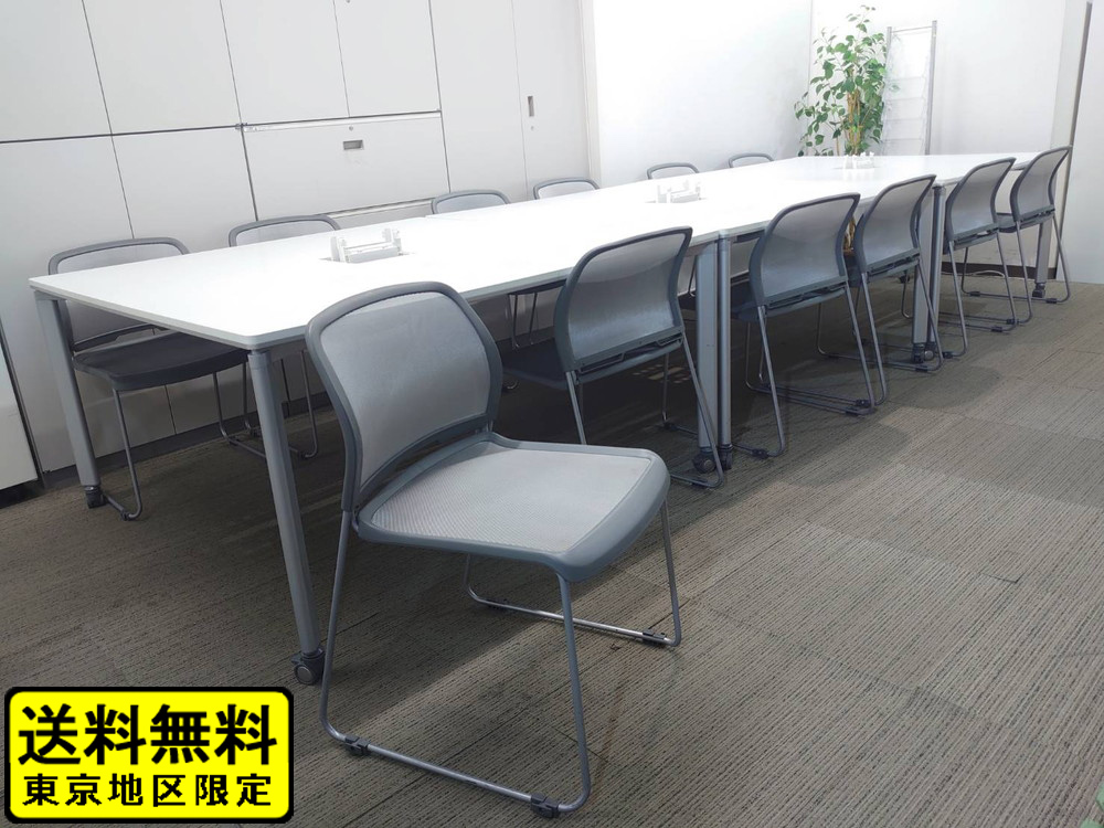 12人用 フリーアドレス 会議セット コクヨ ワークテーブル ワークソート フリアド W1400×3台 可動式 ミーティングテーブル 会議テーブル 平机 SDT-WS1414PAW サンケイ 会議チェア ミーティングチェア スタッキングチェア メッシュチェア 【中古オフィス家具】【中古】