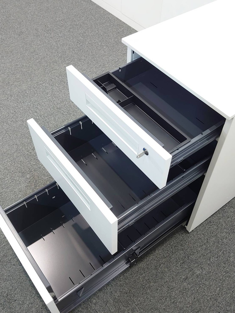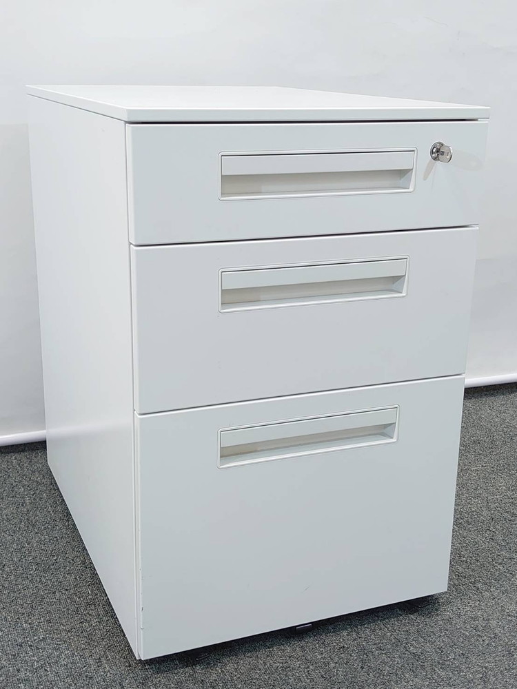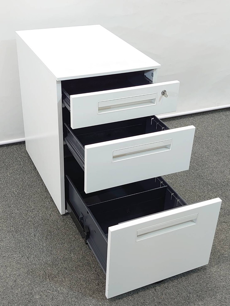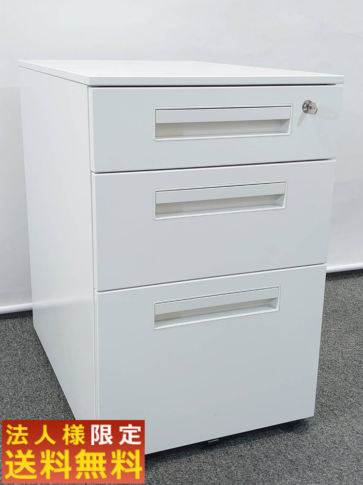 【法人限定送料無料】 カギ付き 鍵付き 3段ワゴン インサイドワゴン 机下収納ワゴン LION ライオン事務器 デスクワゴン 事務ワゴン サイドワゴン キャスターワゴン 袖机 脇机 3段【中古オフィス家具】【中古】