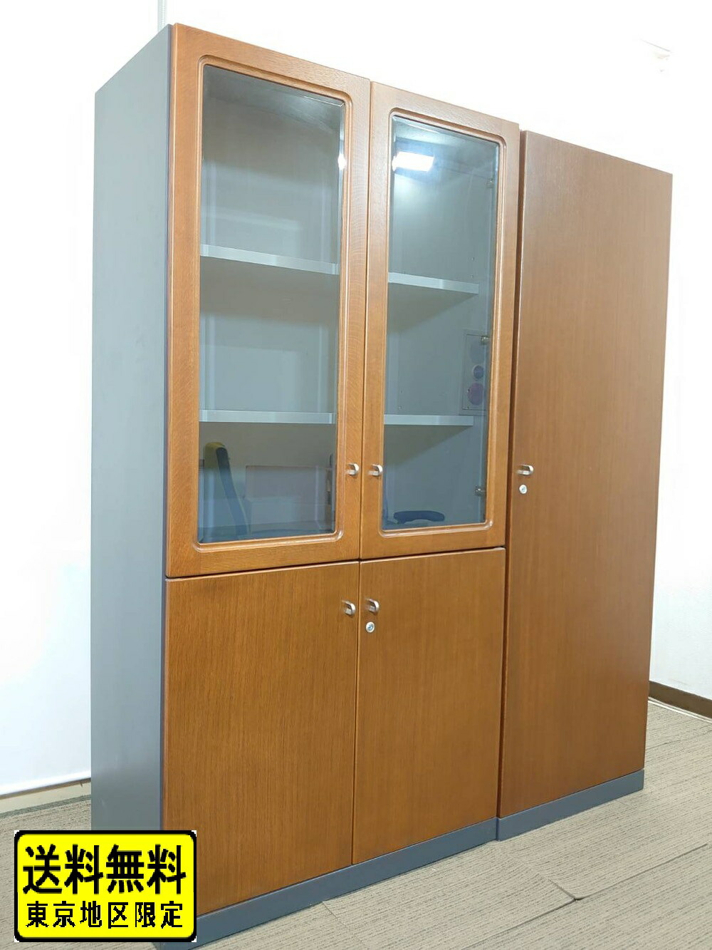 【中古・送料無料 東京地区限定】コクヨ 役員用家具 2点セット 両開きガラス書庫